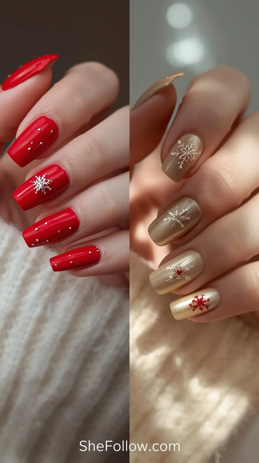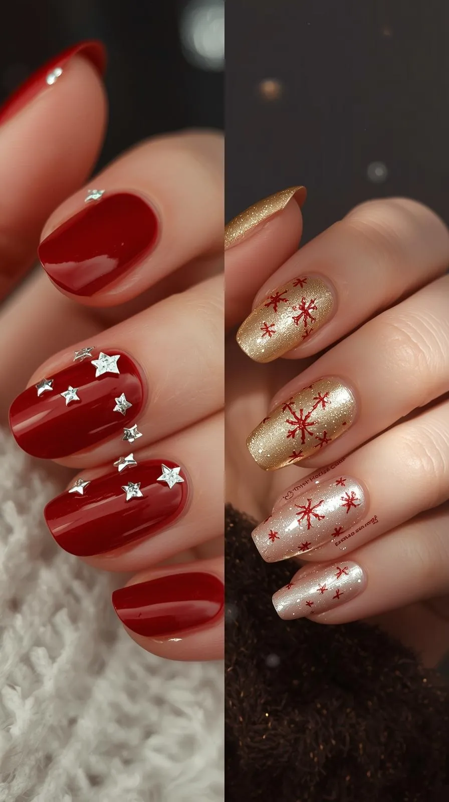 Whether you prefer minimal elegance or bold shine, your Festive Red & Gold Nails will add the perfect finishing touch to your holiday season. Ready to sparkle? Choose your favorite design and bring your Christmas look to life!