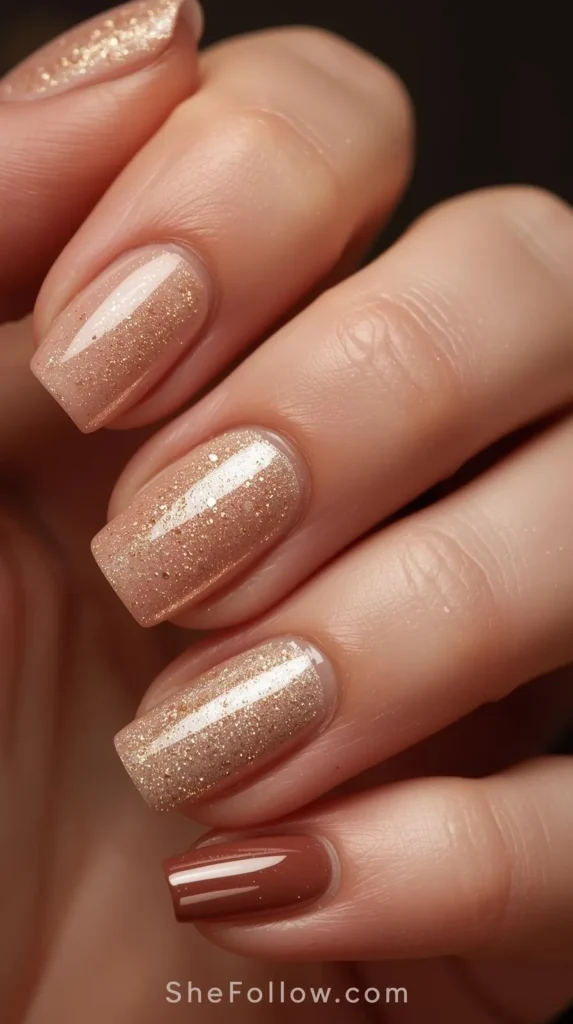 What elevates these neutral nails is texture. Cashmere-soft finishes, subtle matte-gloss contrasts, and faint pearlescent layers give nails depth without overpowering the look. These shades pair beautifully with knit sweaters, wool coats, and neutral winter wardrobes, making them perfect for the entire holiday season.