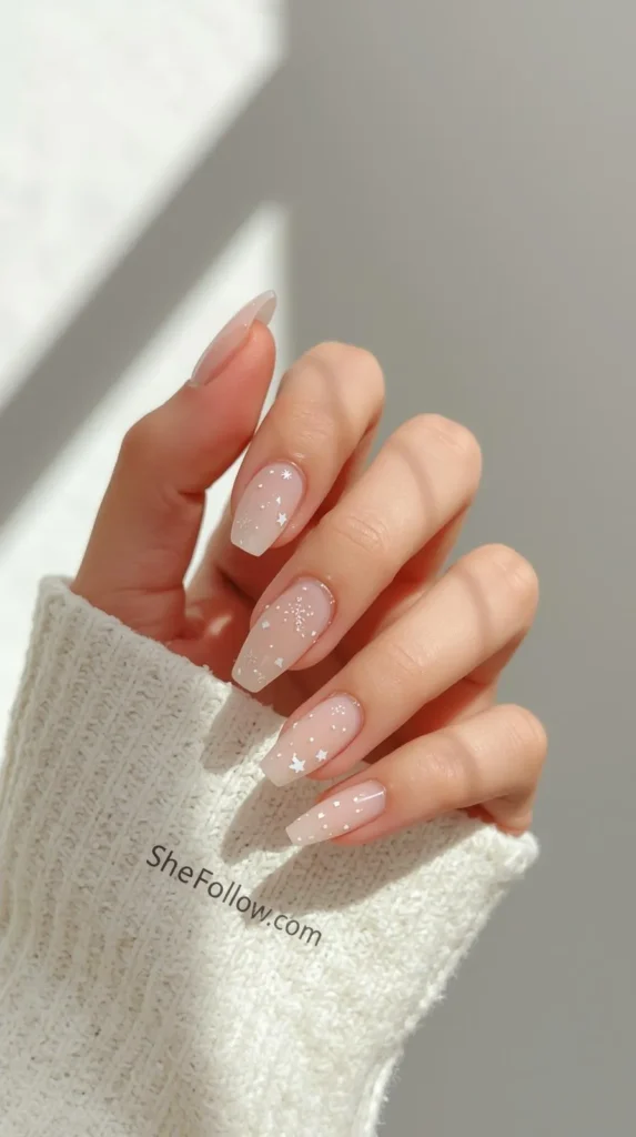 Instead of busy holiday designs, Christmas nail trends 2026 favor minimalist festive details. Tiny stars, micro snowflakes, abstract lines, and subtle metallic dots create a refined holiday feel without looking themed or childish.