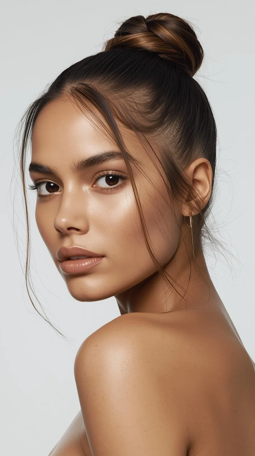 The new version of the clean girl bun is polished but softer, with natural shine and face-framing pieces.